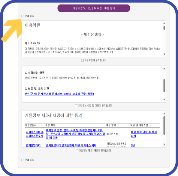 4. 이용약관에 동의한 후 스크롤을 내려줍니다.