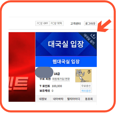3. 로그인후대국실 설치를 클릭합니다.