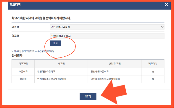 5. 학교를 검색하면 아래에 나오므로 선택합니다.